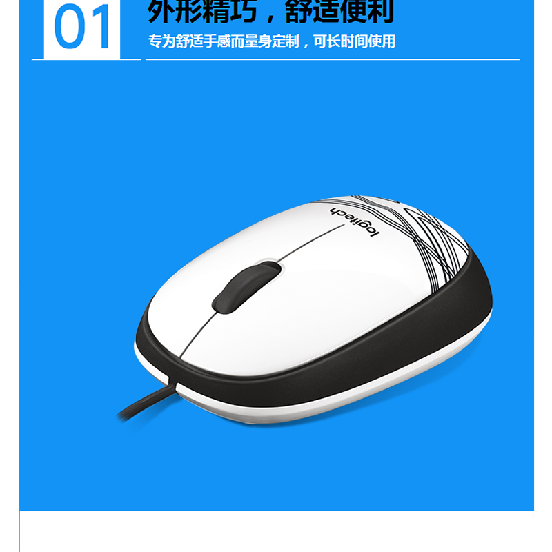 羅技(Logitech) M105 時(shí)尚多彩鼠標(biāo) 左右手通用 (清新白)