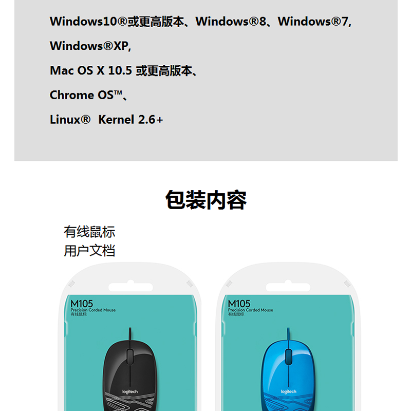 羅技(Logitech) M105 時尚多彩鼠標 左右手通用 (活力藍)