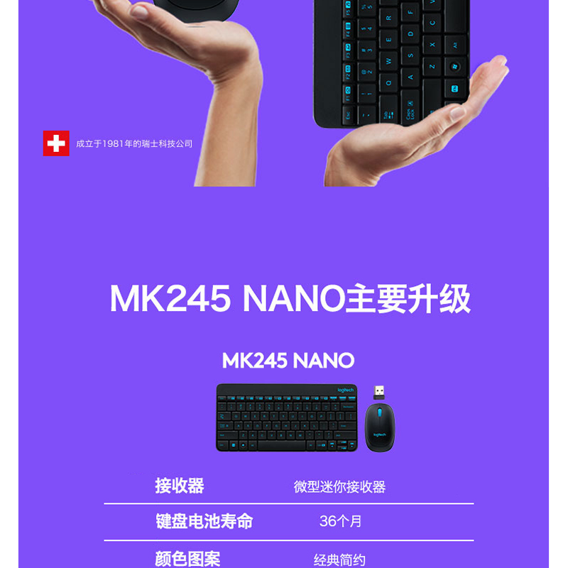 羅技(Logitech) MK245 Nano 無線鍵鼠套裝 小鍵盤 (白藍)