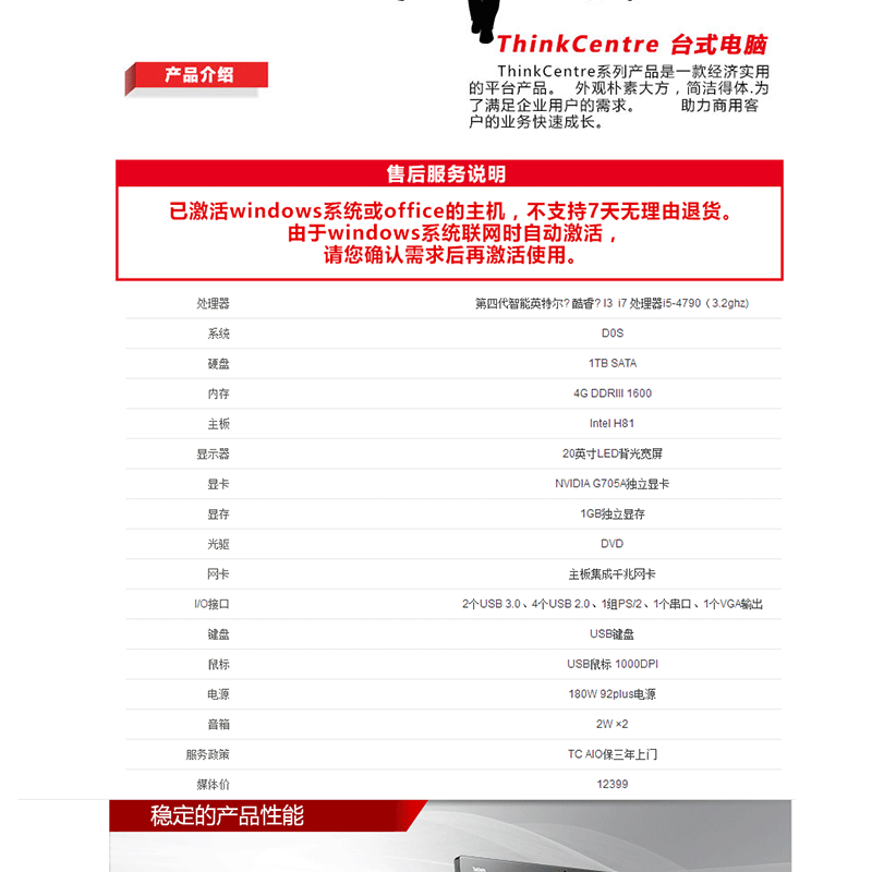 聯(lián)想(Lenovo) M7250z i5-4590S 商務(wù)辦公電腦一體機(jī) 20英寸寬屏 4G內(nèi)存 1T硬盤 1G顯卡