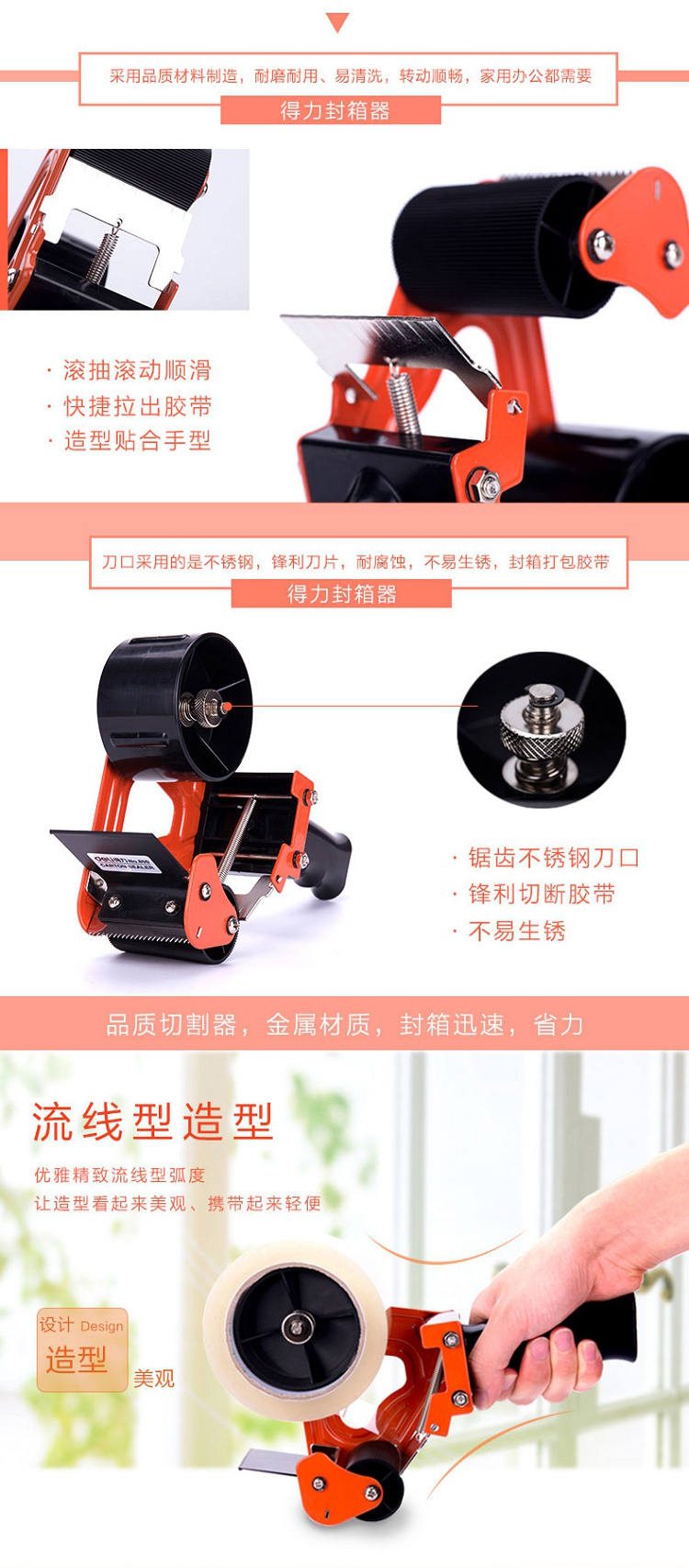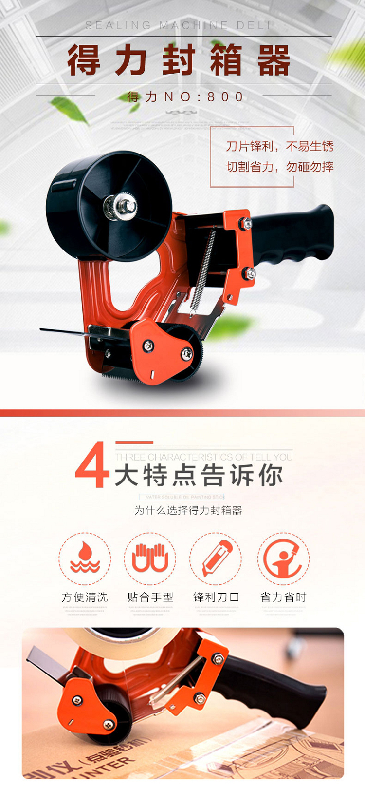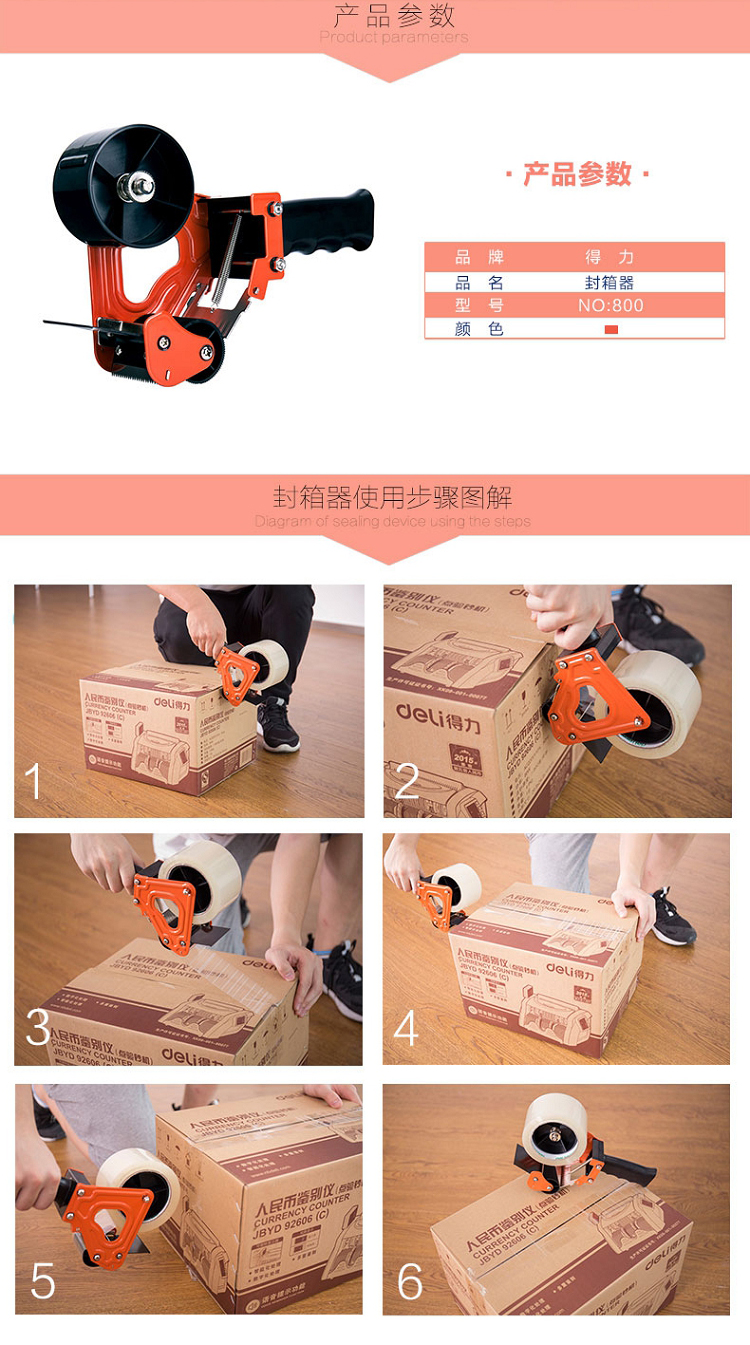 得力(deli) 800 膠帶封箱器 金屬切割器 倉庫打包機 適用膠帶寬度60mm