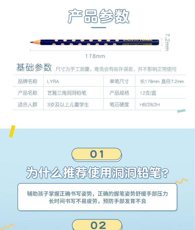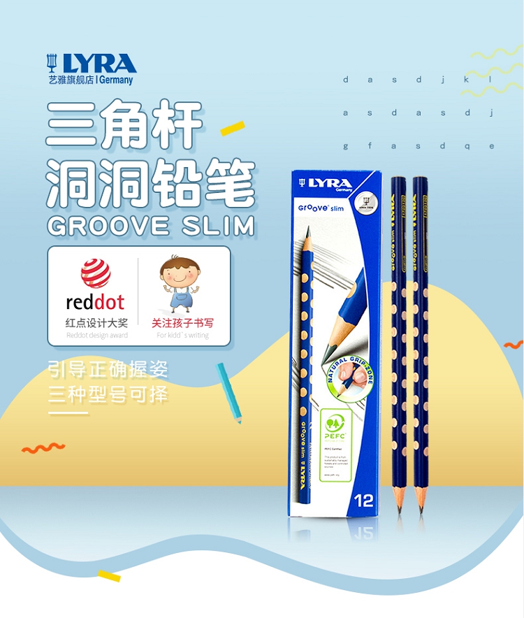 藝雅(LYRA) 1760112 三角洞洞書(shū)寫(xiě)鉛筆12支裝 (2H)