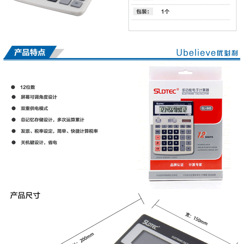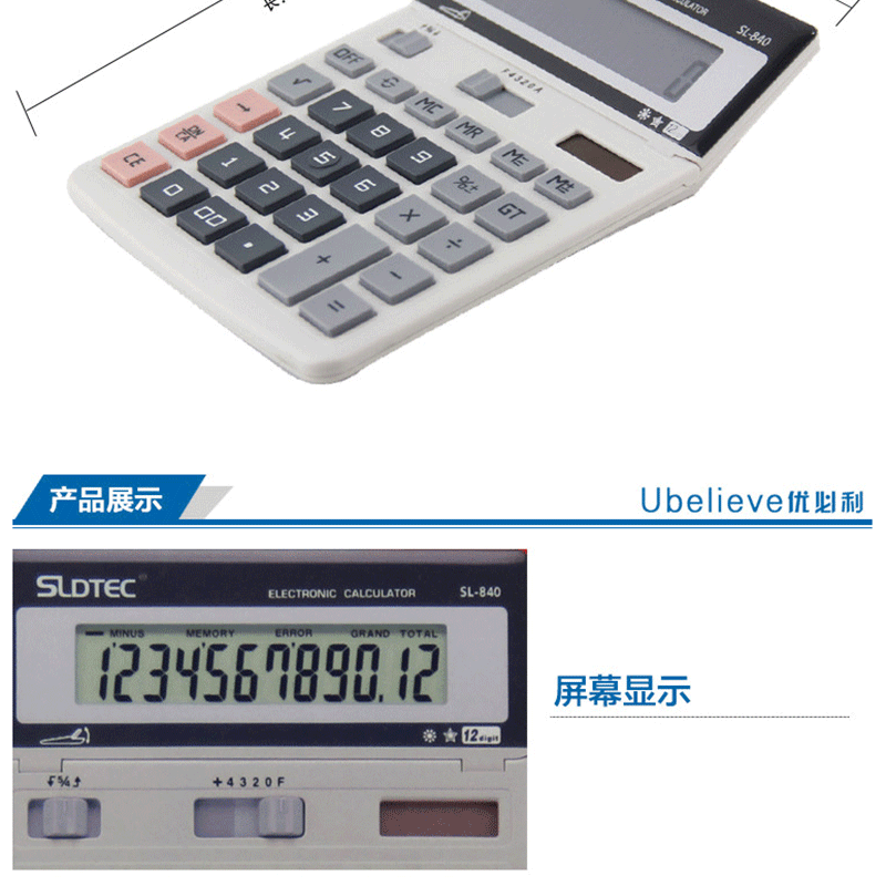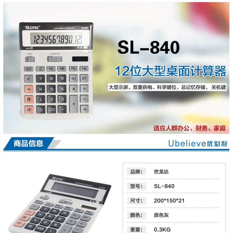 世龍達(dá)((SLDTEC)) SL-840 大顯示屏雙重電源 辦公計(jì)算器
