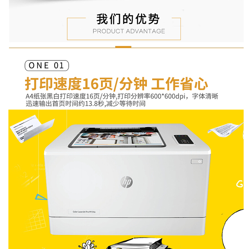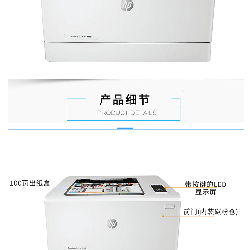 惠普(HP) LaserJet Pro M154a 彩色激光打印機 (USB連接)