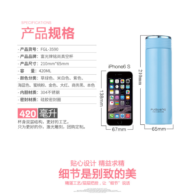 富光 FGL-3590 保溫杯 420ml 不銹鋼車載辦公泡茶水杯 (閃金)