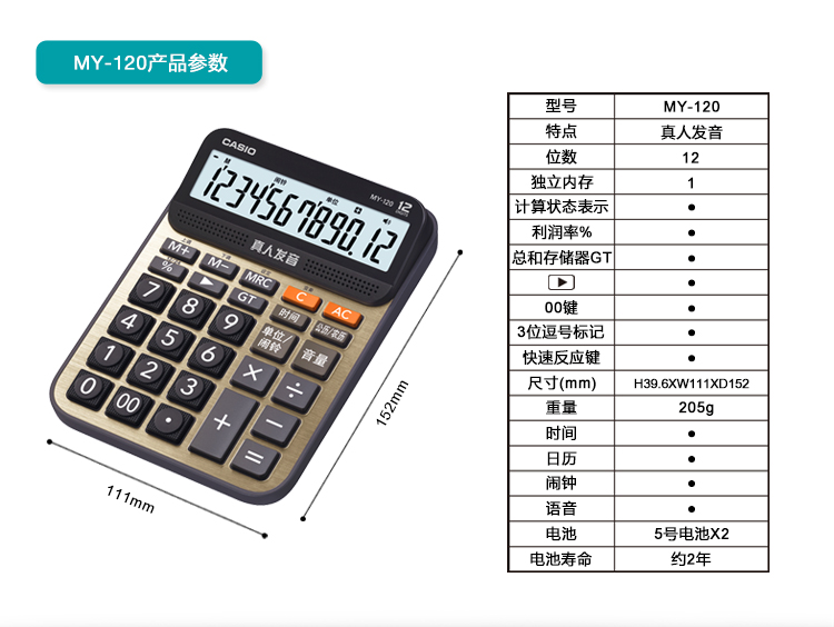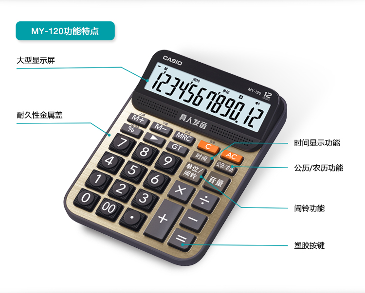 卡西歐(CASIO) MY-120B 語(yǔ)音計(jì)算器 金色