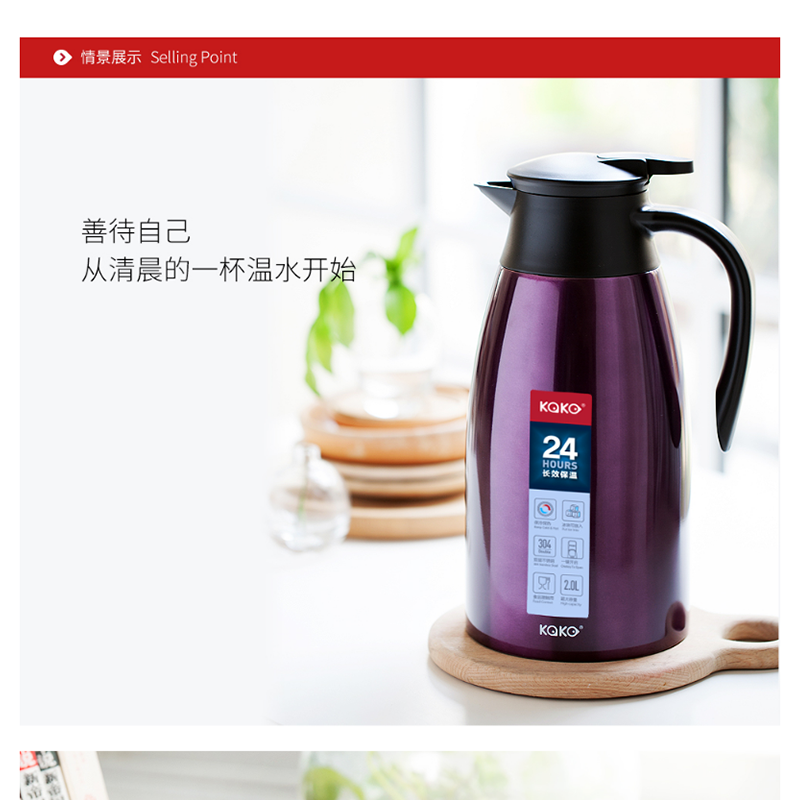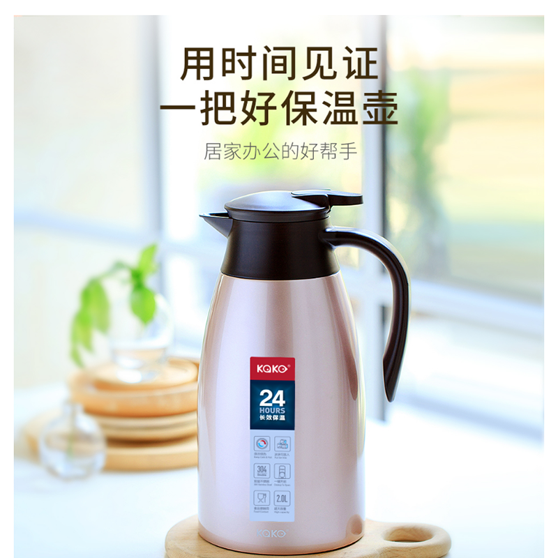 咔咔 KSC-2000-1 保溫壺家用暖壺水壺?zé)崴颗?L開水瓶保溫瓶大容量不銹鋼保暖壺歐式咖啡壺 (浪漫紫)