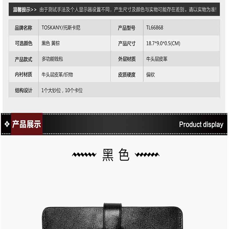 托斯卡尼(TOSKANY) TL66869 商務(wù)休閑插袋錢包/錢夾 頭層牛皮 (黑色)