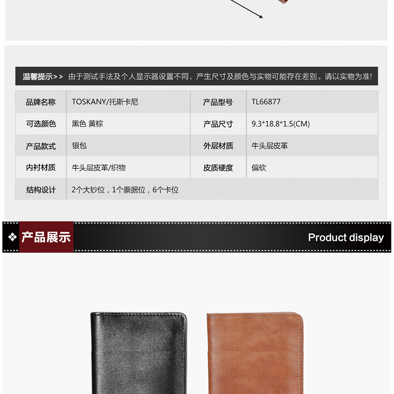 托斯卡尼(TOSKANY) TL66876 商務休閑長款錢包/錢夾 頭層牛皮 (棕色)