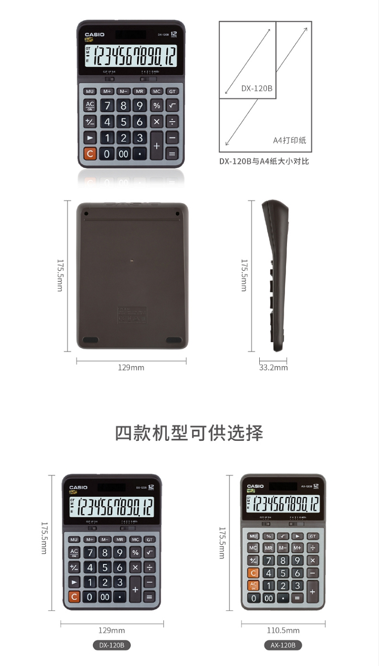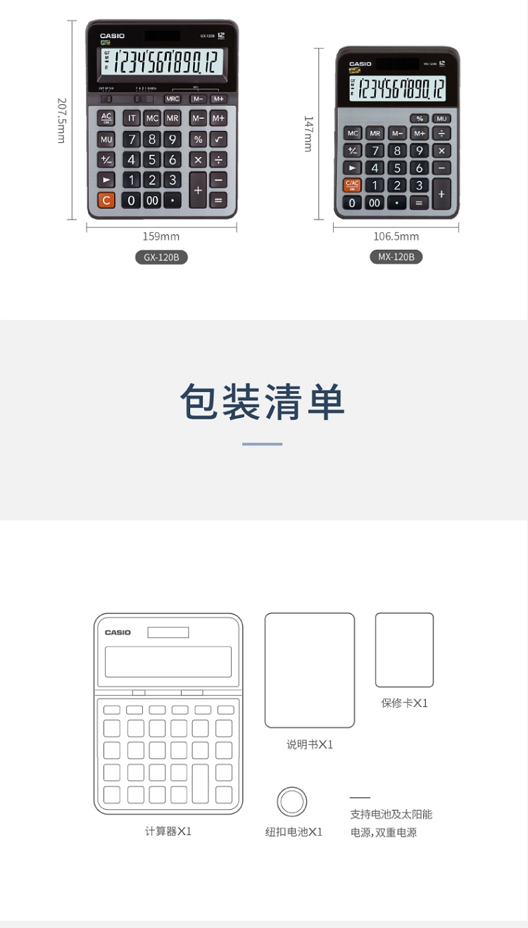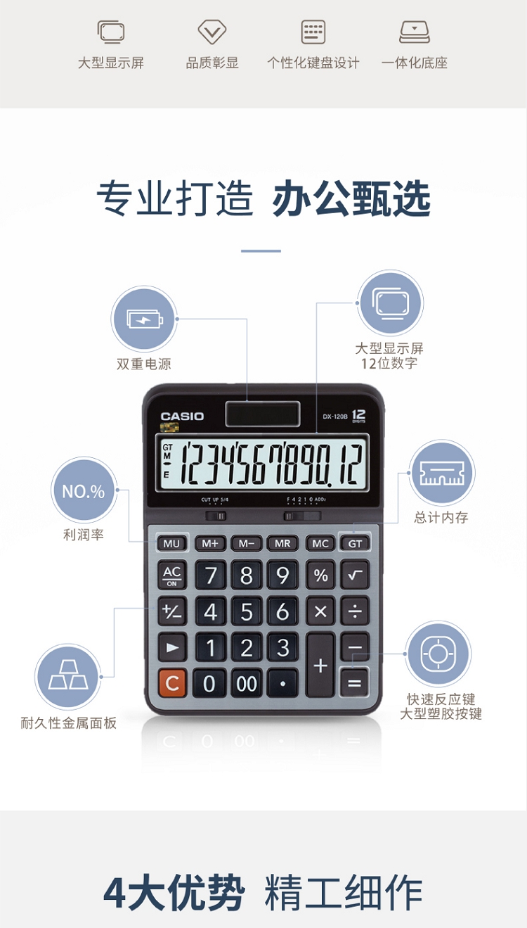 卡西歐(CASIO) DX-120B 商務(wù)計算器 大型機 灰色 DX-120S升級款