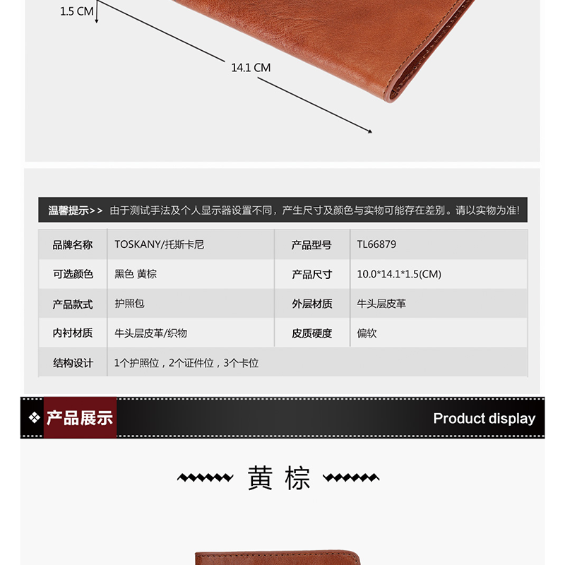 托斯卡尼(TOSKANY) TL66878 多功能護照包 頭層牛皮 (棕色)