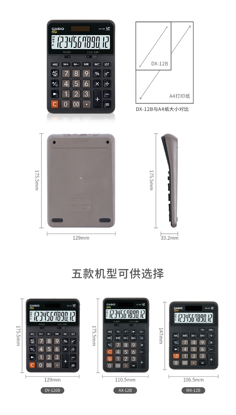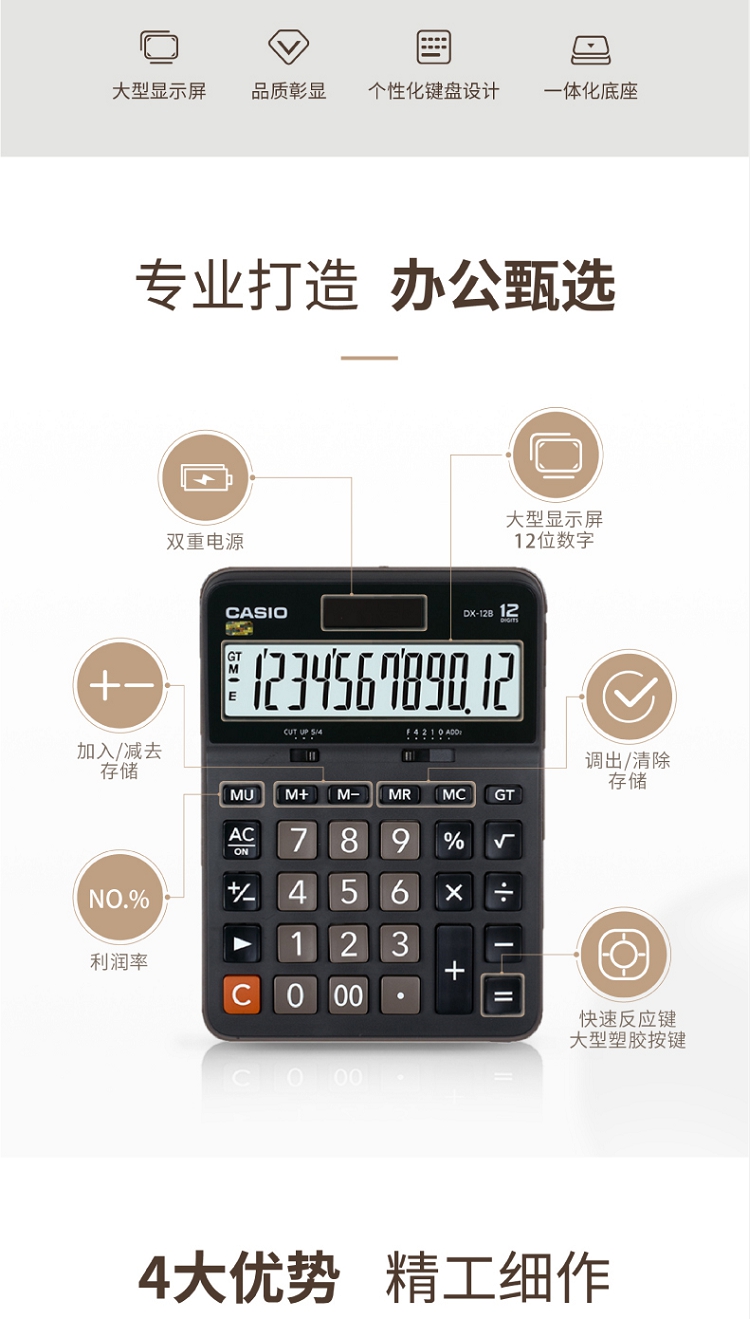 卡西歐(CASIO) DX-12B 商務(wù)計(jì)算器 大型機(jī) 黑色 DX-12S升級(jí)款