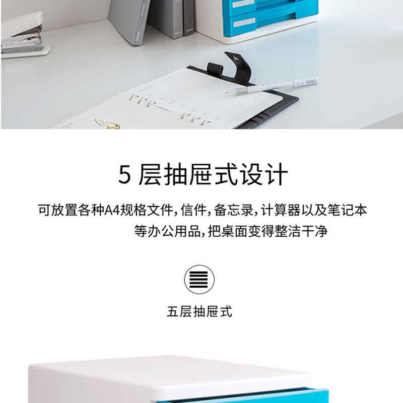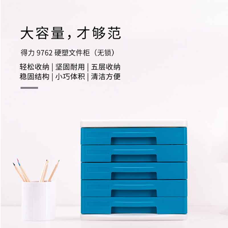 得力(deli) 9762 辦公五層桌面文件柜資料柜收納柜 (淺灰色)