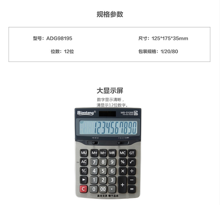 晨光(M&G) ADG98195 MG-D120S 標朗12位金屬面板桌面型計算器