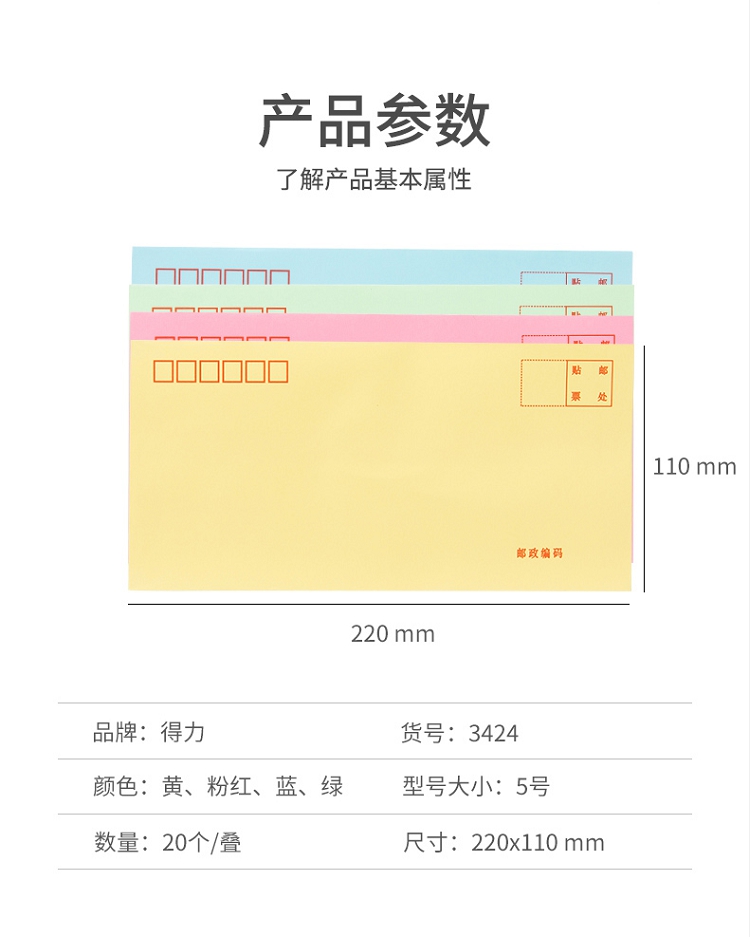 得力(deli) 3424 彩色信封-5號(hào)(20個(gè)/包)(黃色)