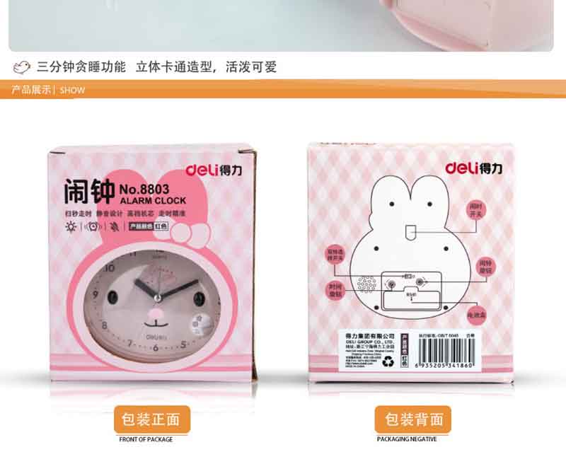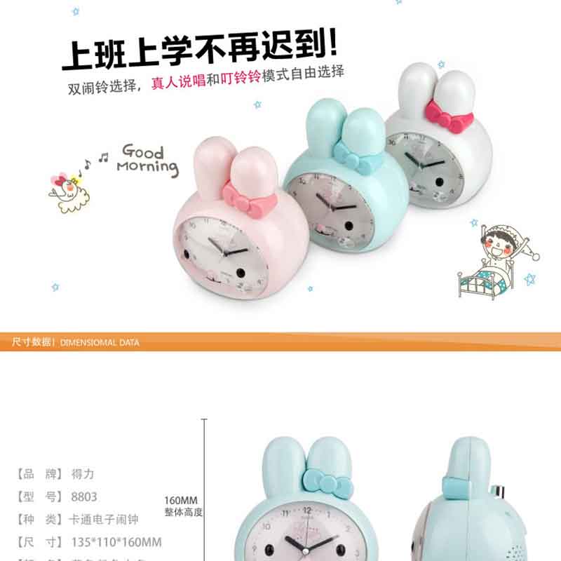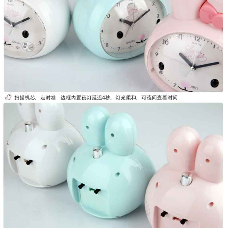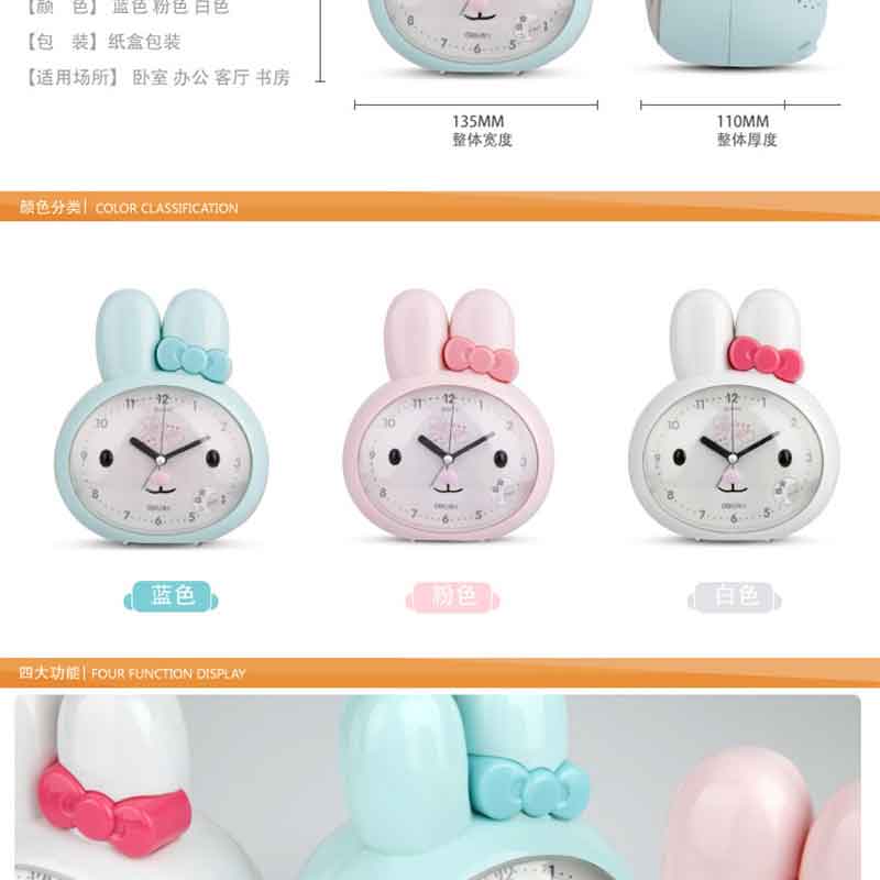 得力(deli) 8803 兔子可愛懶人鬧鐘靜音閃光燈兒童小鬧鐘 (粉色)