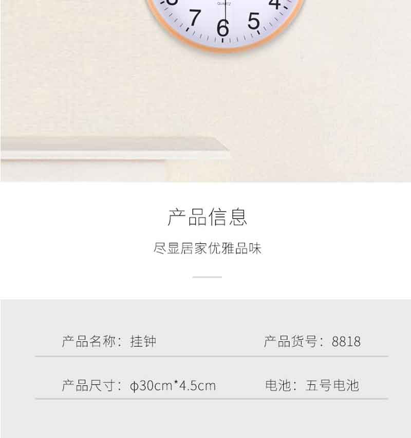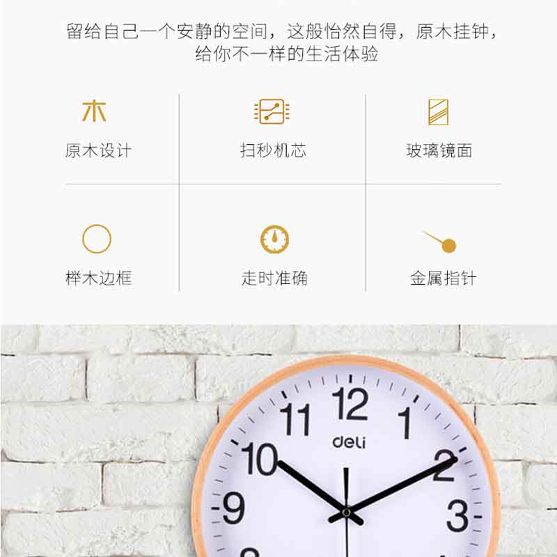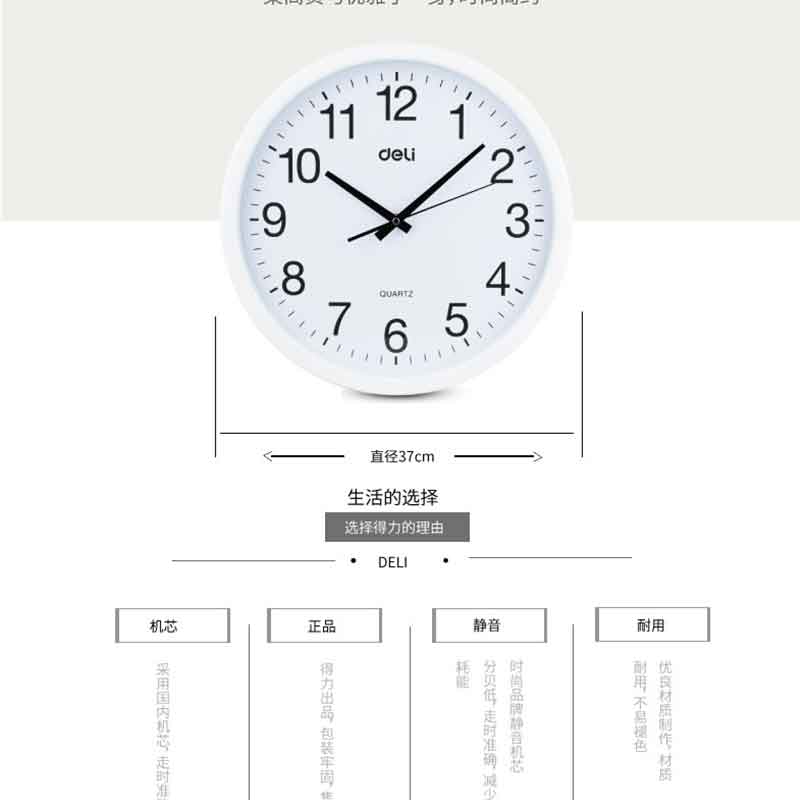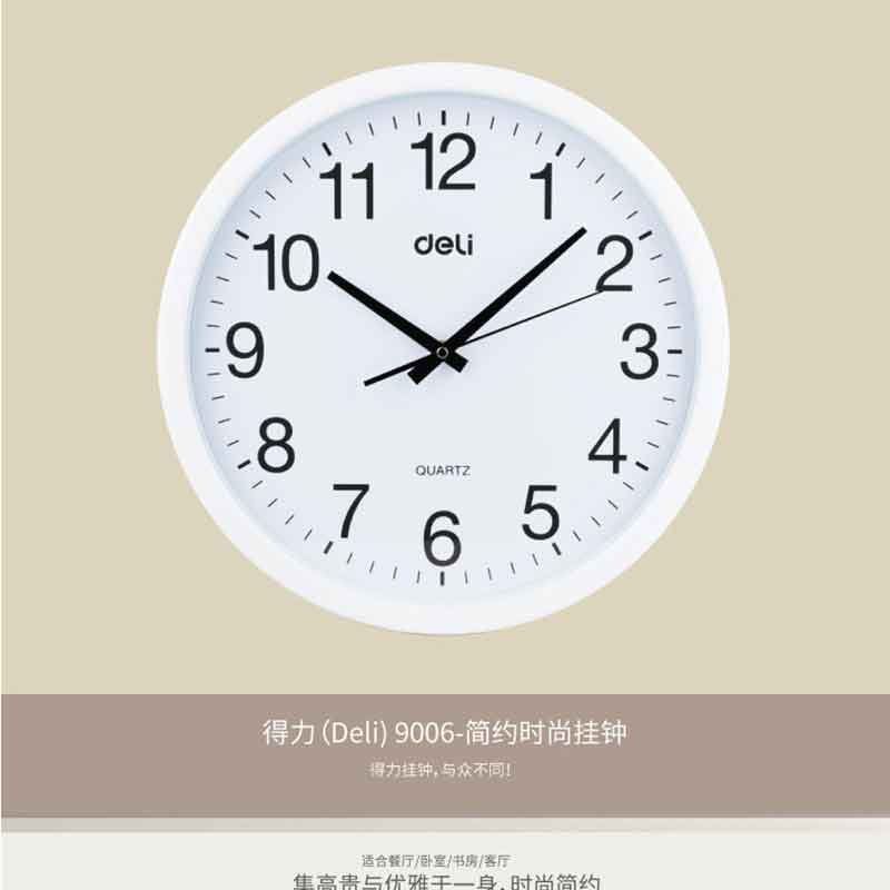 得力(deli) 9006 掛鐘 (只)37CM(14.5寸) (白色)
