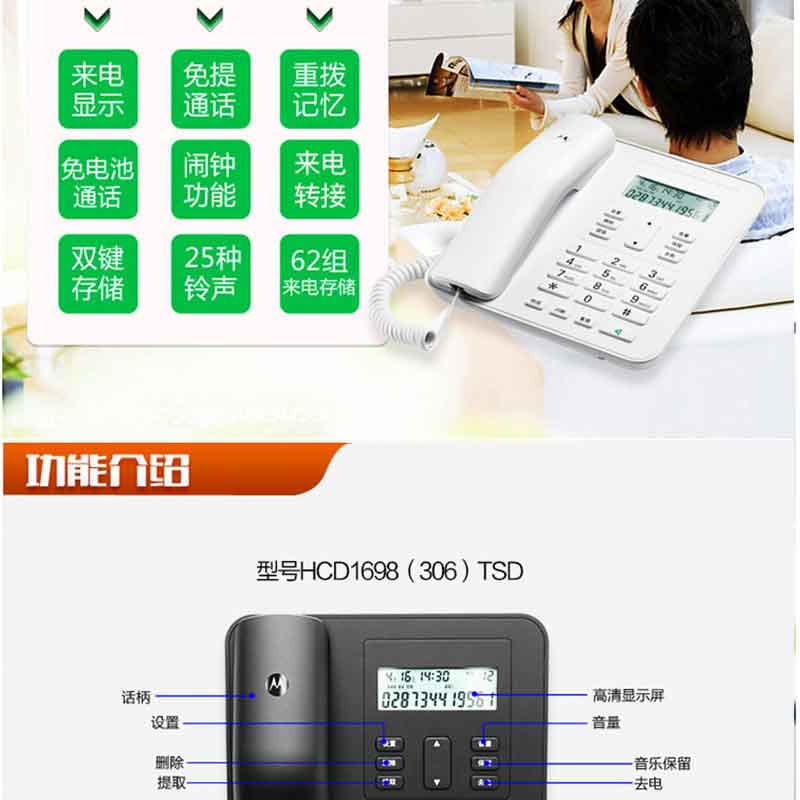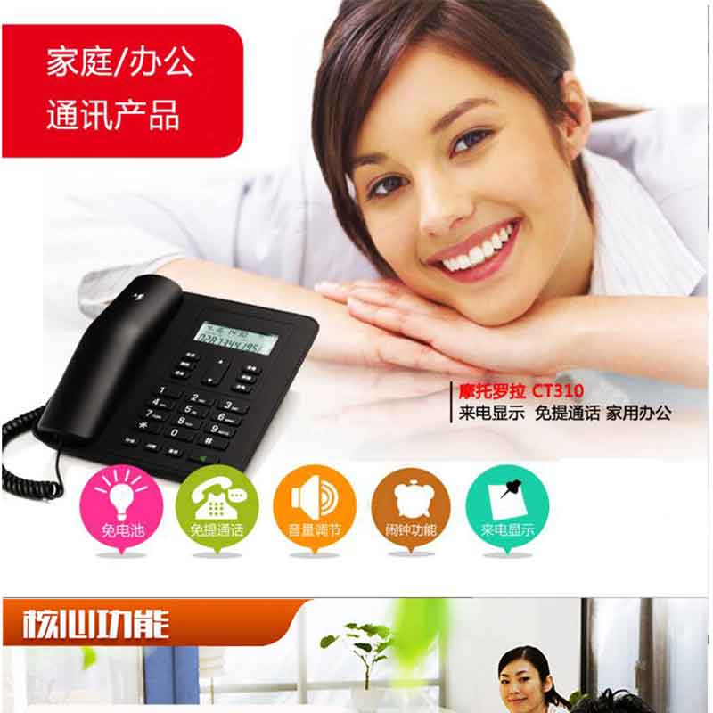 摩托羅拉(Motorola) CT310C 固定有繩電話機(jī)座機(jī)來電顯示免電池大屏幕歐式時(shí)尚辦公商務(wù)家用有線座機(jī)(黑色)