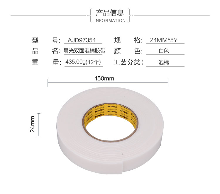 晨光(M&G) AJD97354 雙面泡棉膠帶24mm*5y 1卷裝