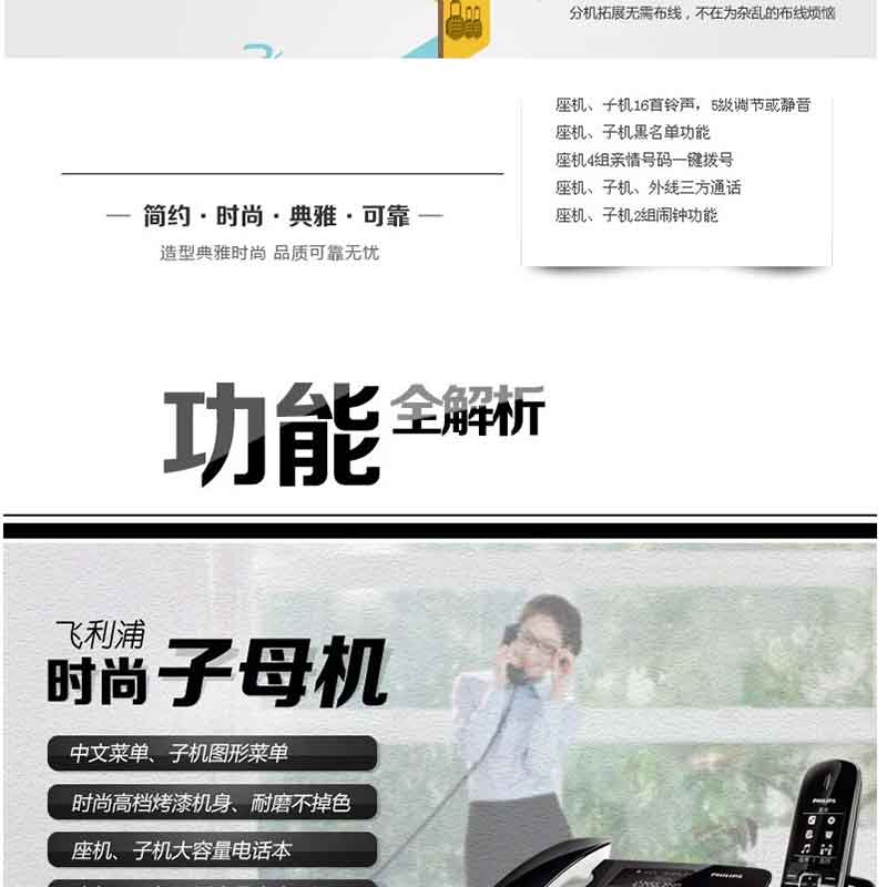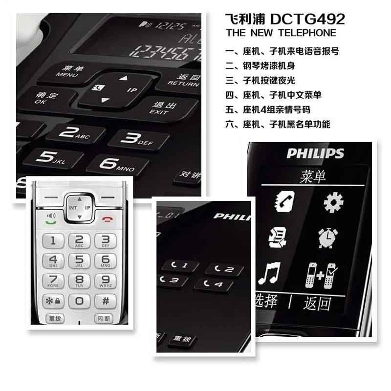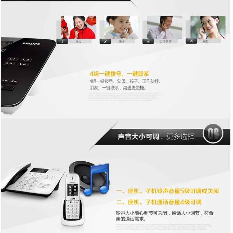 飛利浦(PHILIPS) DCTG492 語音報(bào)號黑名單中文數(shù)字子母機(jī)一拖一家用辦公會(huì)議坐固定固話無線電話機(jī)座機(jī)無繩電話機(jī)(白色)