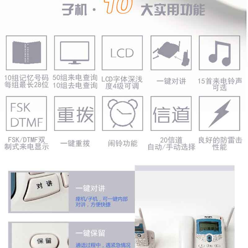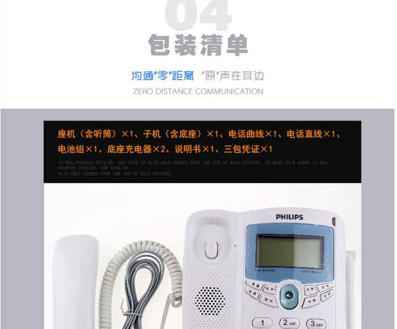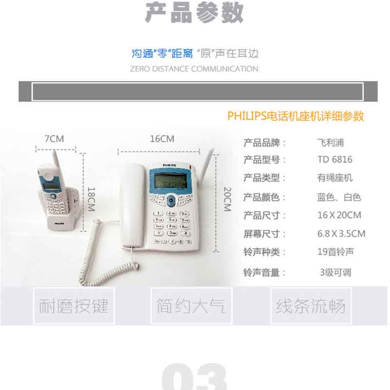 飛利浦(PHILIPS) TD-6816 無繩電話子母機(jī) 家用/商務(wù)辦公電話機(jī)/一拖一套裝 (白色)