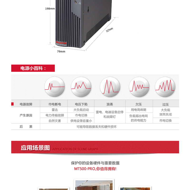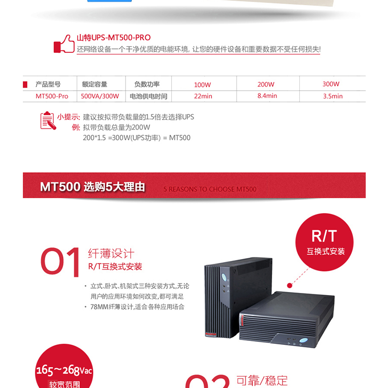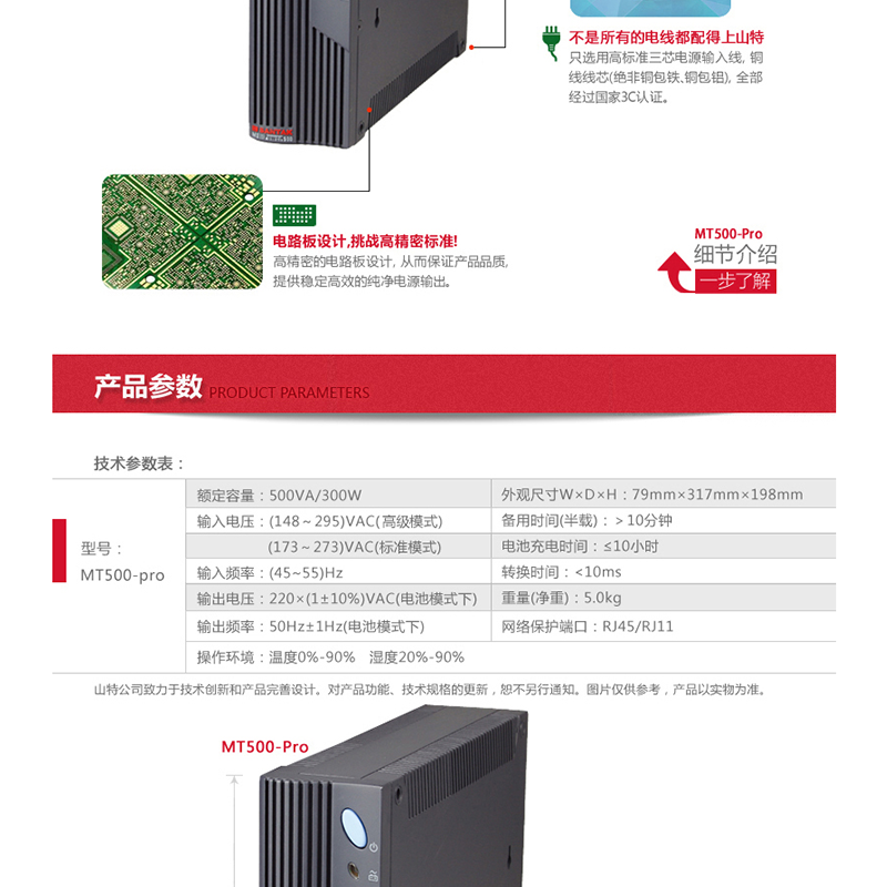 山特(SANTAK) MT500-pro 后備式UPS不間斷電源 (500VA/300W)