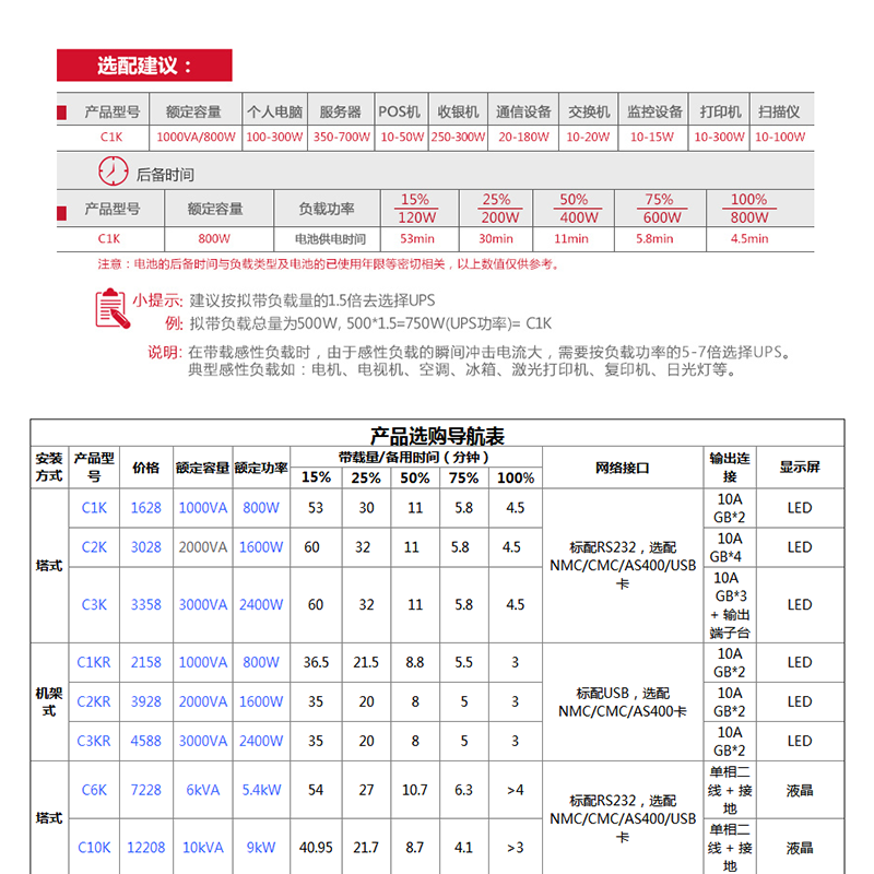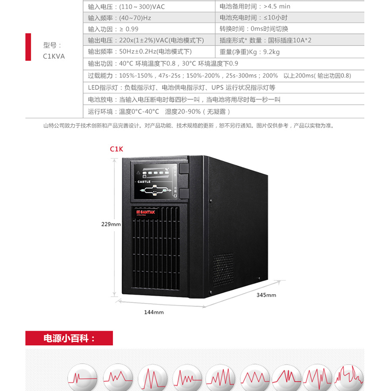 山特(SANTAK) C1K 在線式UPS主機(jī)不間斷電源穩(wěn)壓 (1000VA/800W)