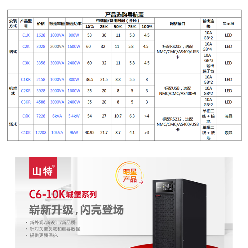 山特(SANTAK) C10K 在線式UPS主機(jī)不間斷電源穩(wěn)壓 (10KVA/9KW)