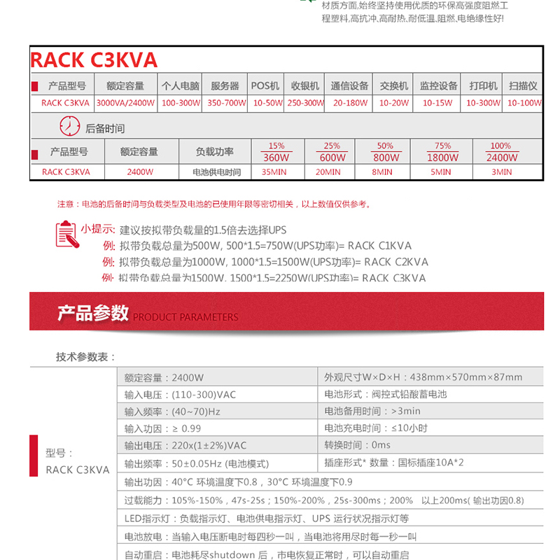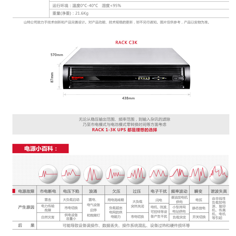 山特(SANTAK) C3KR 機架式UPS不間斷電源 (3000VA/2400W)