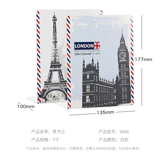 得力(deli) 9266 炫彩時尚大號鐵書立 2片/付 顏色隨機