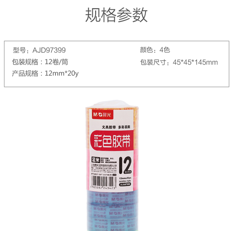 晨光(M&G) AJD97399 辦公文具彩色透明小膠帶 12mm*20y 12卷裝