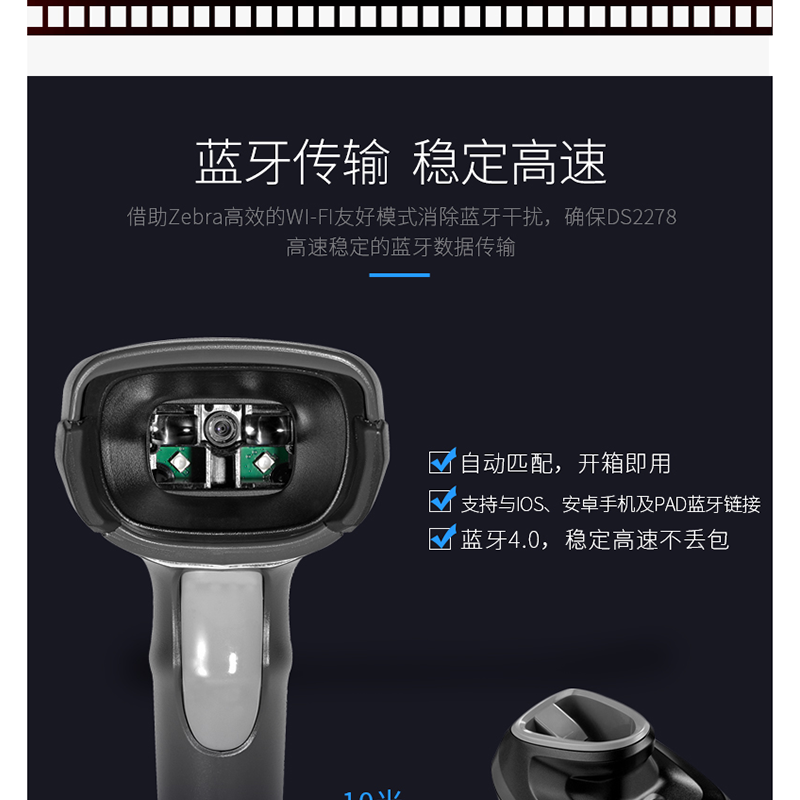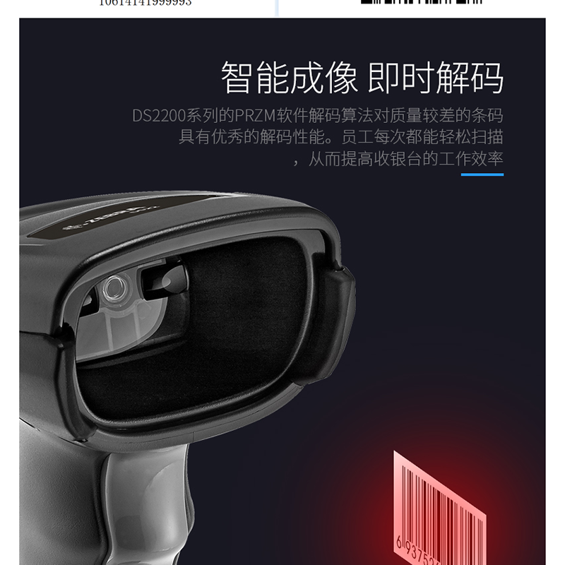 斑馬(ZEBRA) DS2208 二維碼/條碼掃描槍 微信支付寶收銀 (黑色單機)