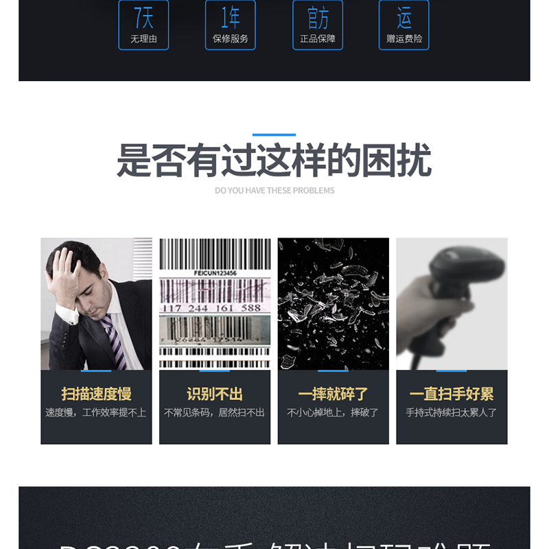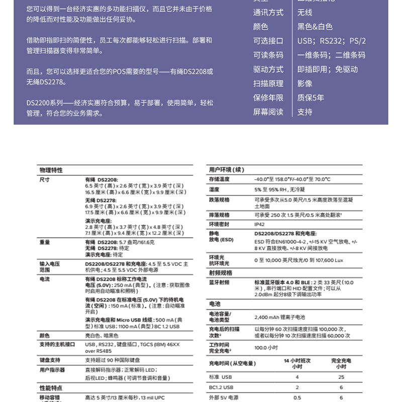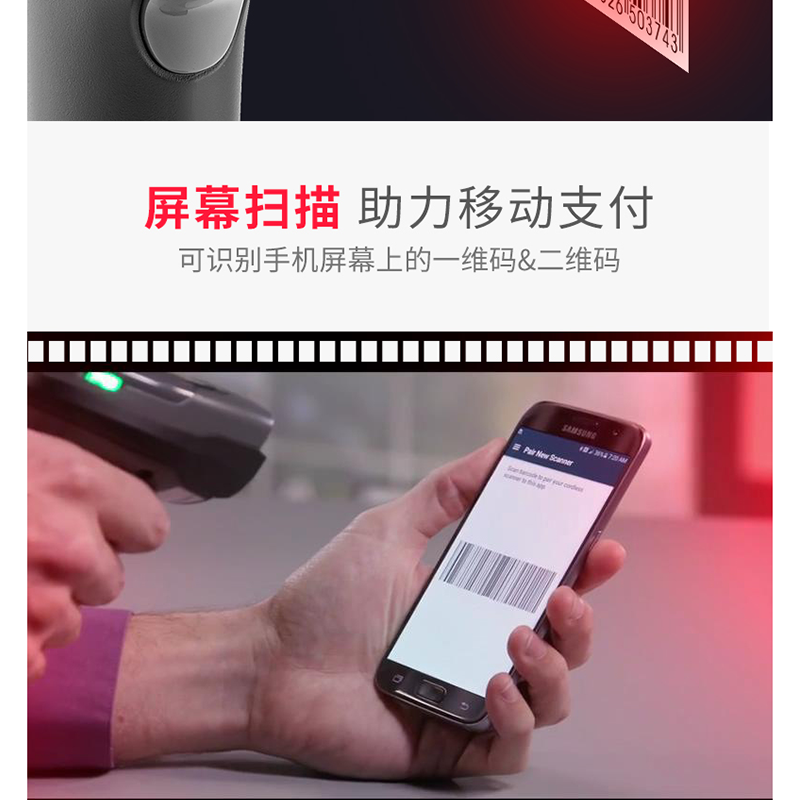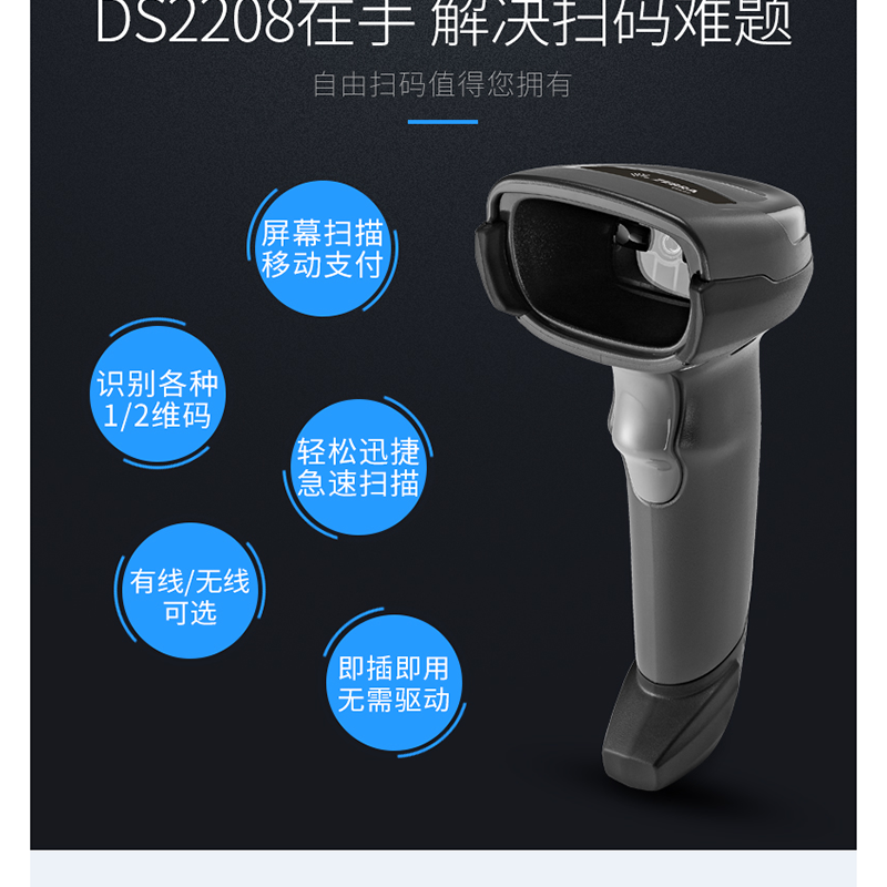 斑馬(ZEBRA) DS2208 二維碼/條碼掃描槍 微信支付寶收銀 (黑色帶架套裝)