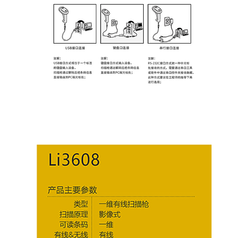 斑馬(ZEBRA) LI3608-SR 工業(yè)級標準景深掃描器/掃描槍 (一維有線)