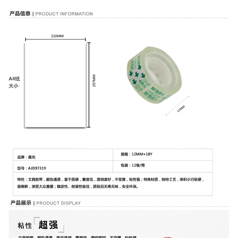 晨光(M&G) AJD97319 辦公文具小膠帶 12mm*18y 12卷裝