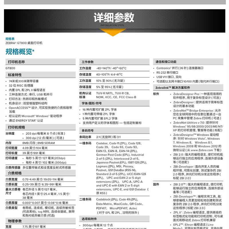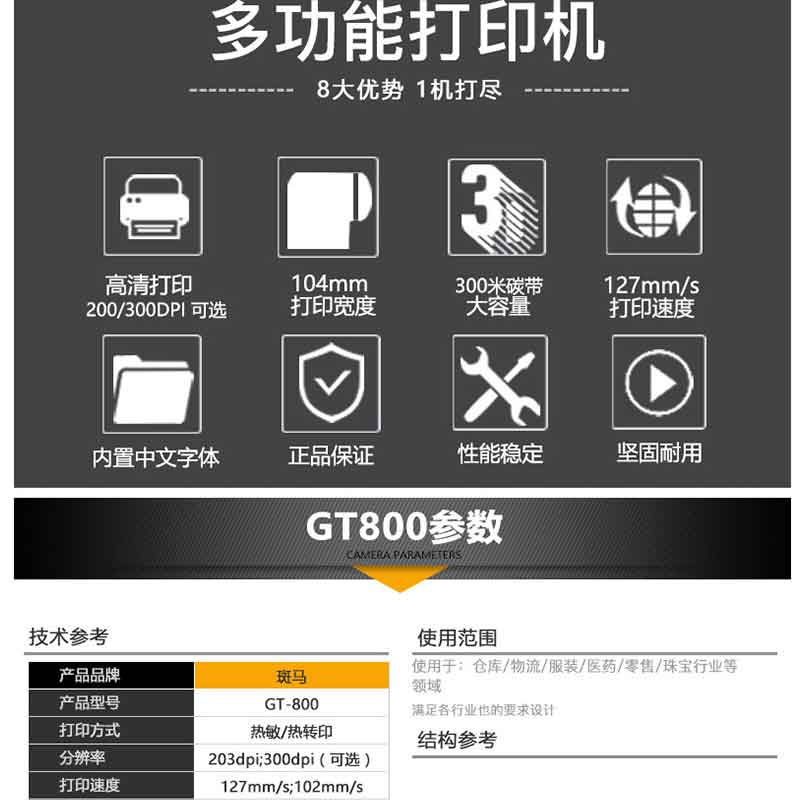 斑馬(ZEBRA) GT800 條碼打印機/不干膠標簽機 (203dpi)