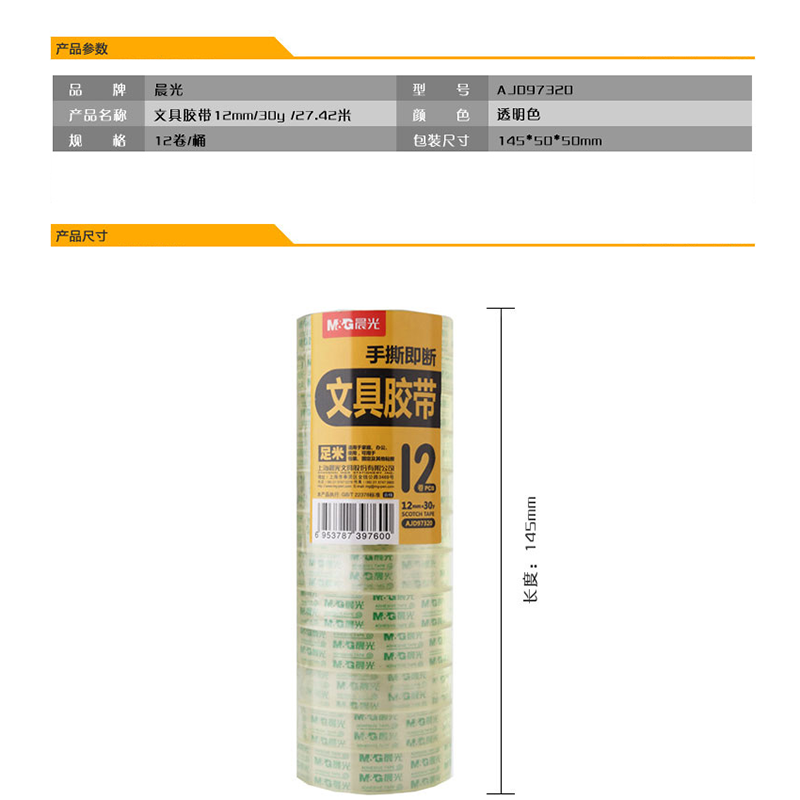 晨光(M&G) AJD97320 辦公文具小膠帶12mm30y 12卷裝