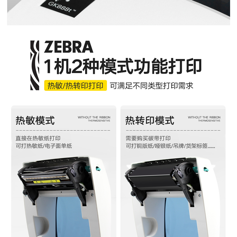 斑馬(ZEBRA) GK888T 斑馬條碼打印機(jī) 不干膠標(biāo)簽機(jī) (不含網(wǎng)卡)