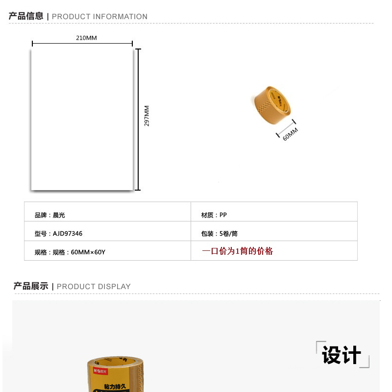 晨光(M&G) AJD97346 米黃色膠帶60mm*60y 5卷/筒