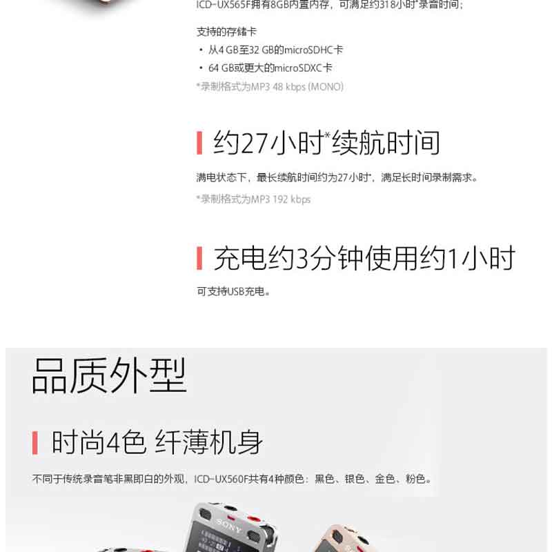 索尼(SONY) ICD-UX565F 數(shù)碼錄音棒 纖薄機身 8GB (黑色)