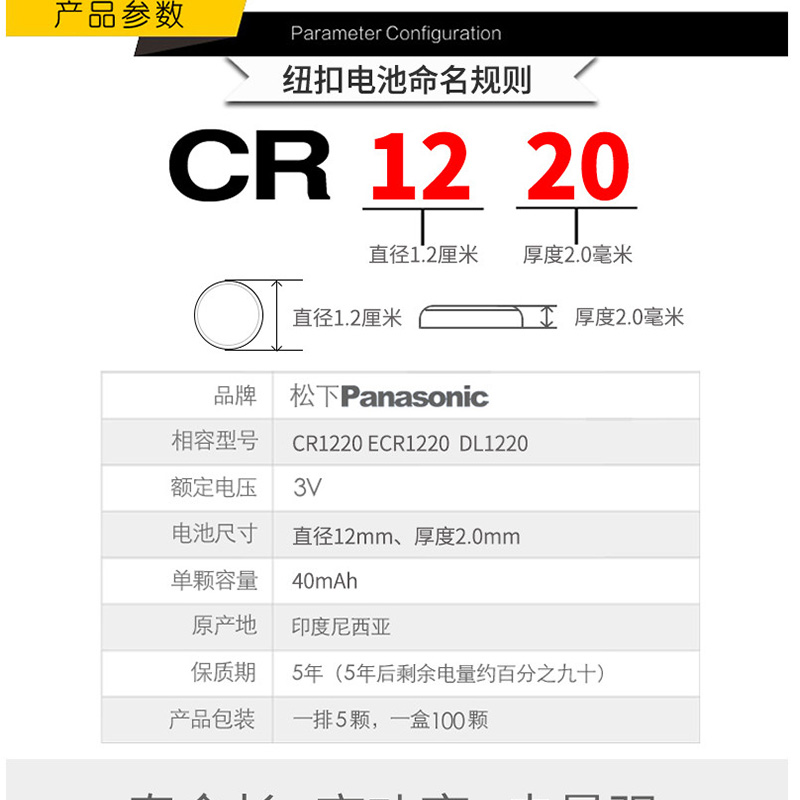 松下(panasonic) 進(jìn)口紐扣電池電子5粒(CR1220)