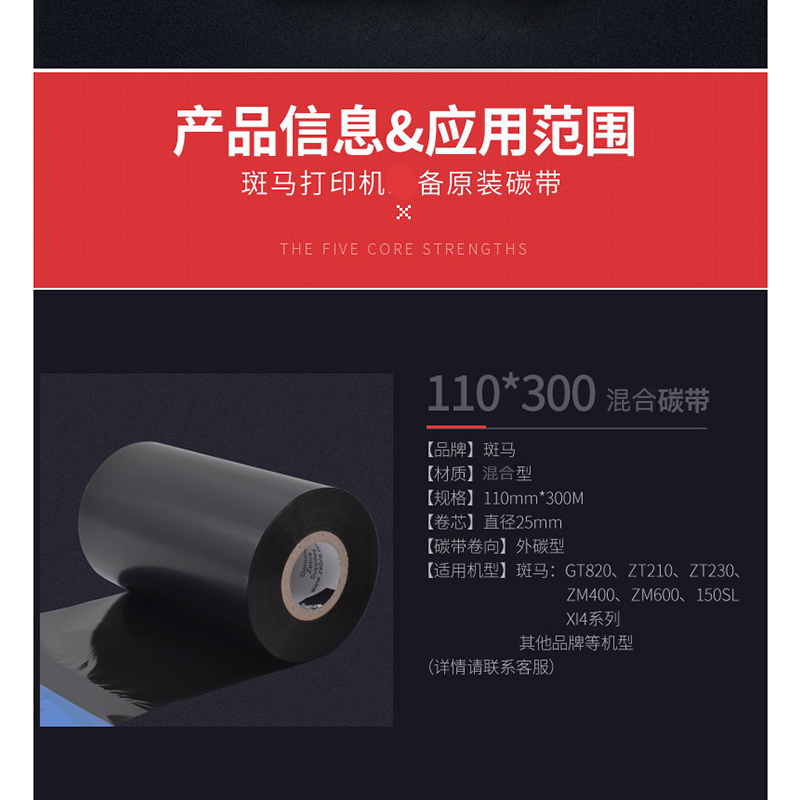 斑馬(ZEBRA) A3501 條碼打印機(jī)碳帶/混合基碳帶(大卷芯110mm*300m)