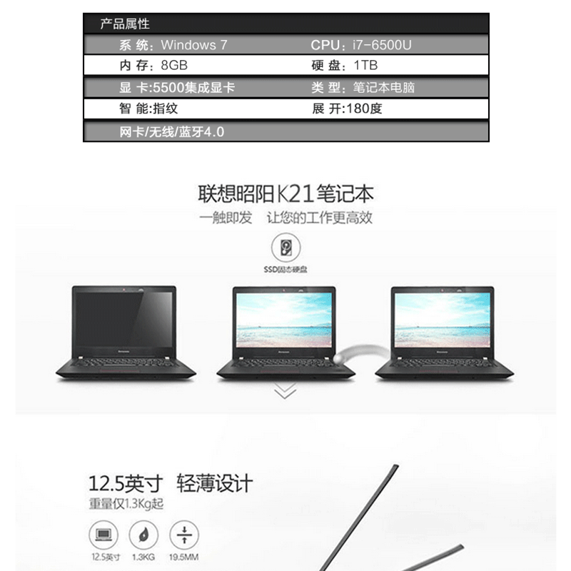 聯(lián)想(Lenovo) 昭陽K20-80 商務筆記本電腦(i5-5300U)12.5英寸 4G內(nèi)存 500G硬盤 集成顯卡