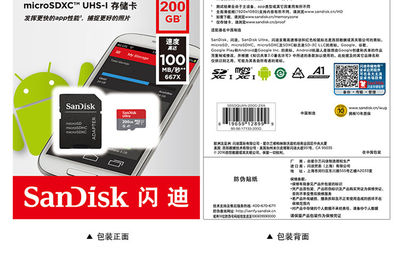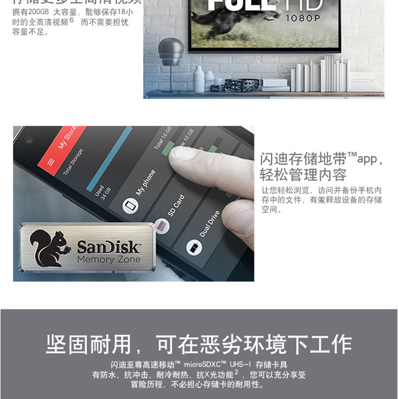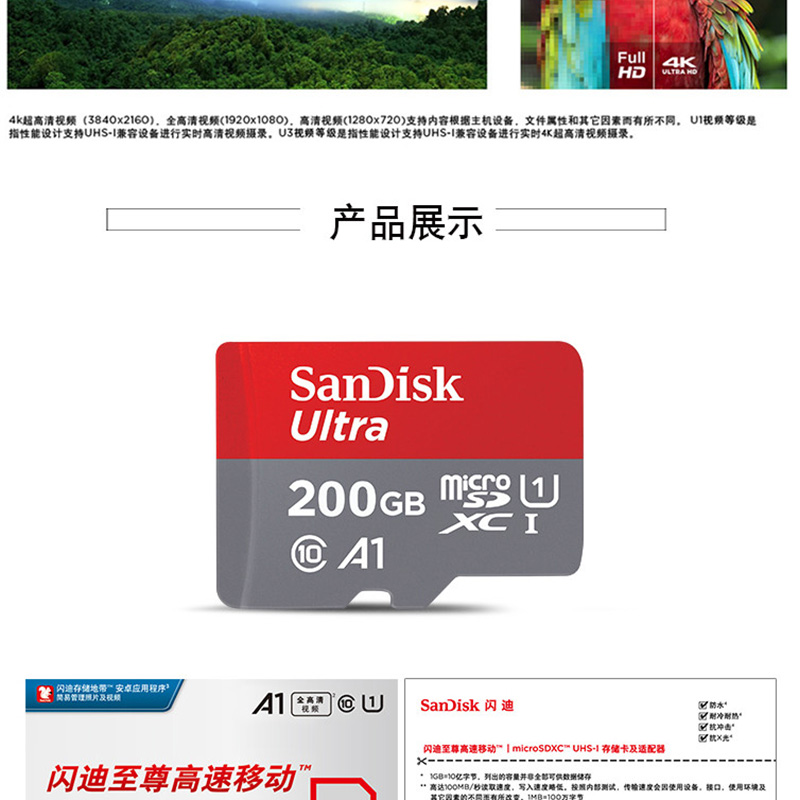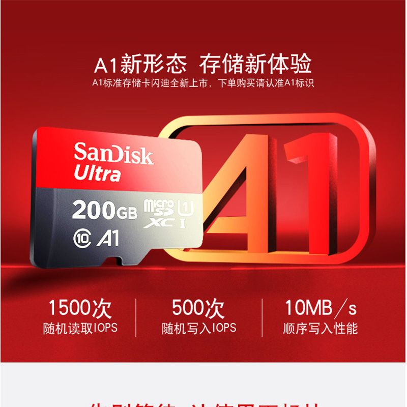 閃迪(SanDisk) A1 讀速100MB/s 至尊高速移動(dòng)MicroSDHC UHS-I存儲(chǔ)卡 TF卡 (200GB)