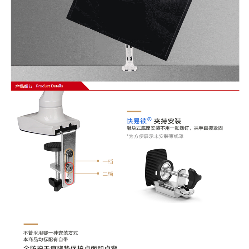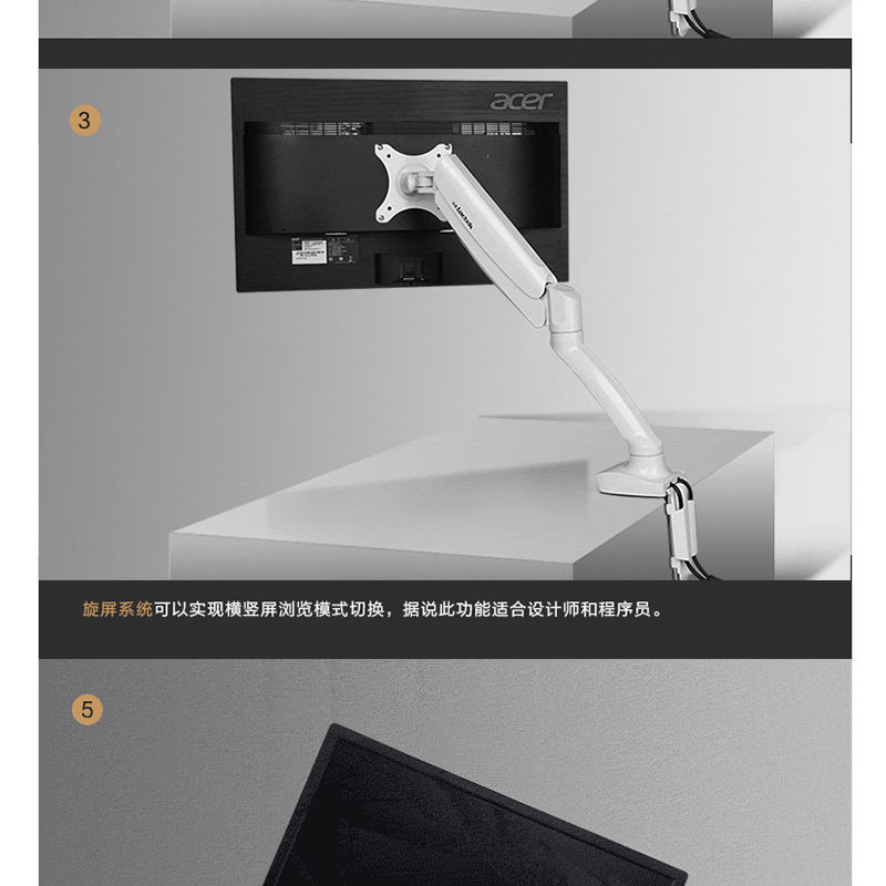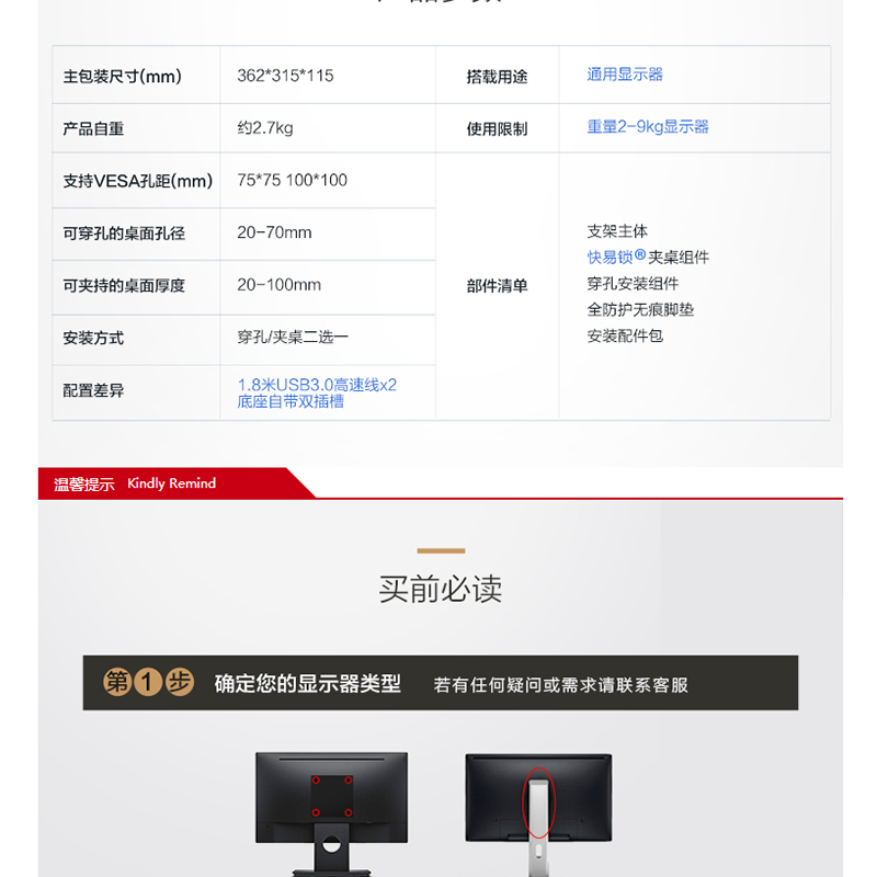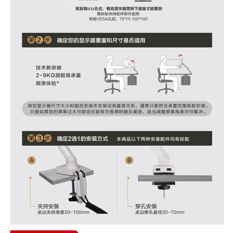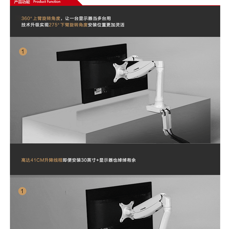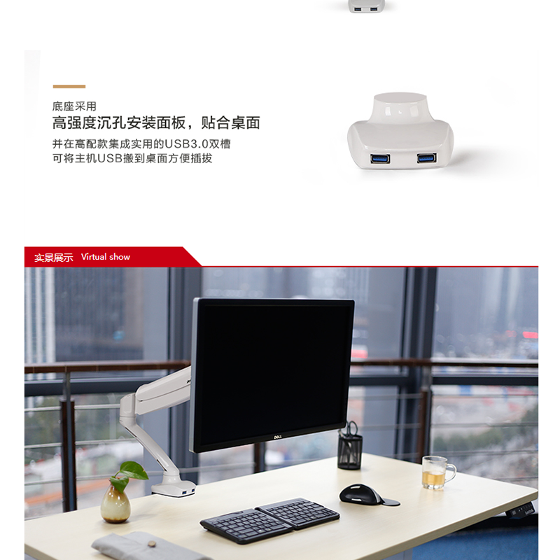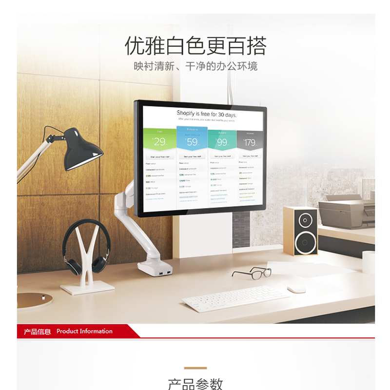 適用17-30英寸,自由懸停,橫豎屏切換,usb接口,節(jié)省桌面空間。 ?