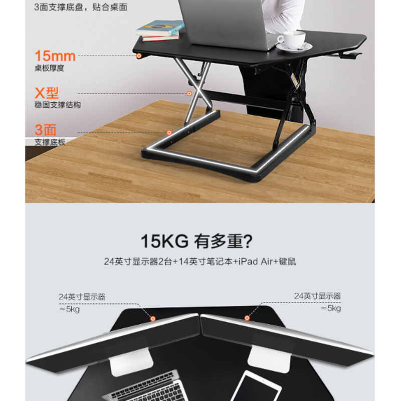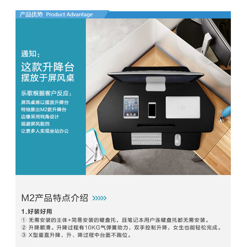 樂歌(Loctek) M2 站立式辦公升降臺/升降桌 折疊移動筆記本工作臺 (黑色)