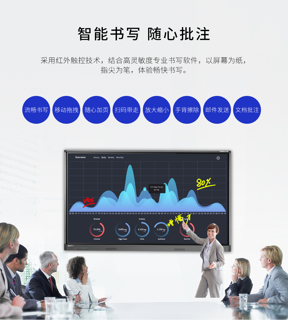 書寫、批注、擦除、會議,無線展示、多媒體教學,商業(yè)展示,遠程會議 ?