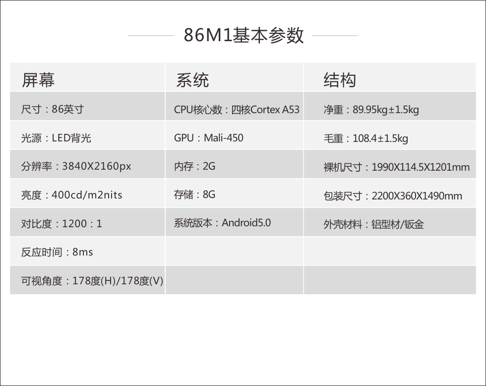 • 65英寸 75英寸 86英寸