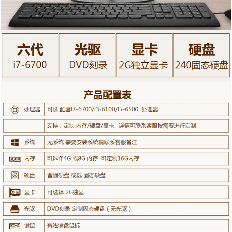 RAMBO/2GB Geforce 920A 獨立顯卡/WIFI/藍牙/1080P 攝像頭&麥克/Intel SkyLake H110/內(nèi)置音箱/單彎管底座/USB有線光電鍵鼠/2個USB3.0(側(cè)置)4個USB2.0(后置/DP輸出/耳機耳麥二合一接口/9合1讀卡器 ?