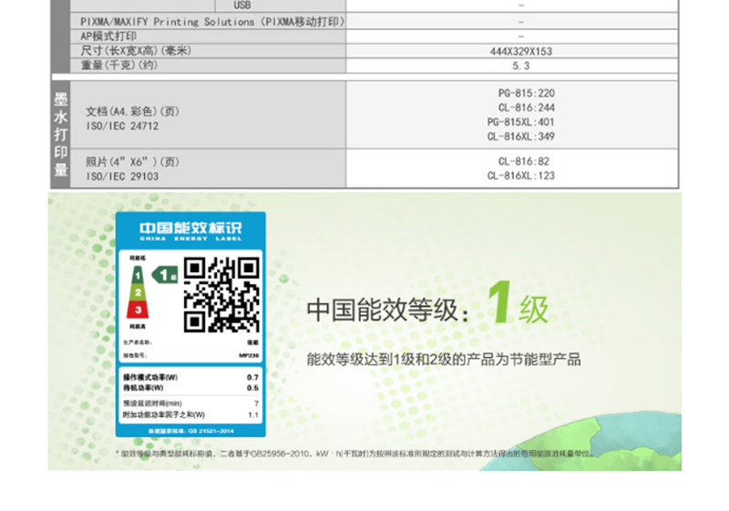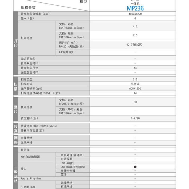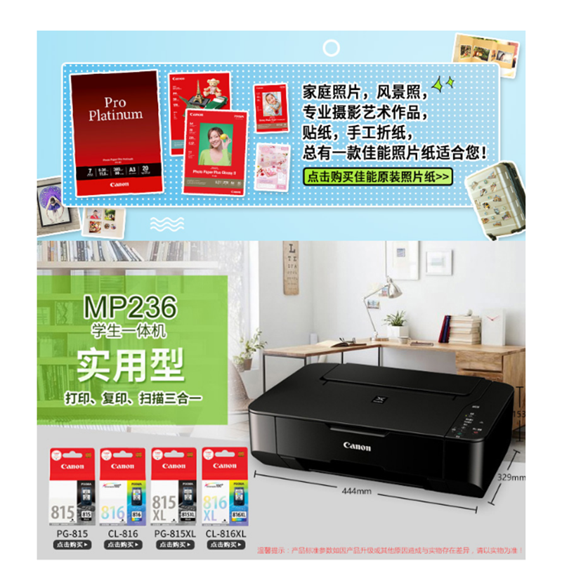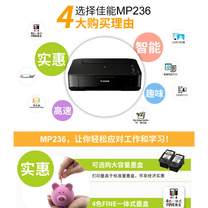 佳能(Canon) MP236 彩色噴墨多功能一體機(jī) (打印速度黑7.0ipm/彩4.8ipm)